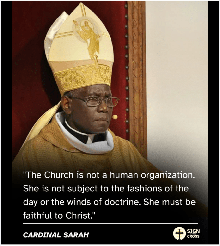 Auch der letzte Satz des Zitates von Kardinal Sarah versteht sich von selbst, wenn die Kirche der Leib Christi ist: “Sie muss Christus treu sein.”